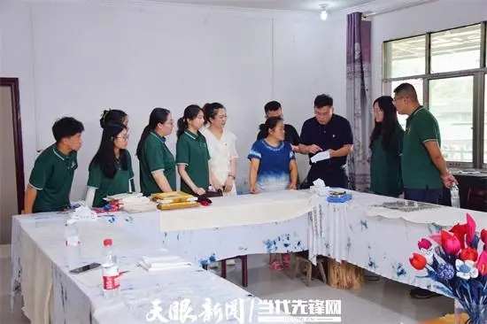 在国家非物质文化遗产枫香印染的传统制作工坊,动手体验了枫香染手工艺品制作全过程,零距离感受技艺中的工匠精神,品味非遗文化的独特魅力。在苗绣培训基地,开展普通话能力提升专项培训,通过情景对话模拟等方式,将产品介绍、电商直播等生活化场景有机融入,提升绣娘们语言文字应用和用普通话打开新的销售市场的能力,让“非遗产品”销售上“云端”,民族传承的路更宽。